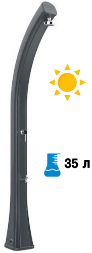 Принцип работы максимально прост, что делает солнечный душ популярным атрибутом пляжных курортов. Вода, хранящаяся в корпусе душа, нагревается за счет солнца. Нагретая вода смешивается с холодной водой из источника постоянного водоснабжения (или из садового шланга). При помощи смесителя возможна регулировка потока горячей и холодной воды до температуры комфорта.