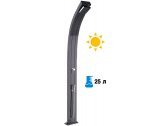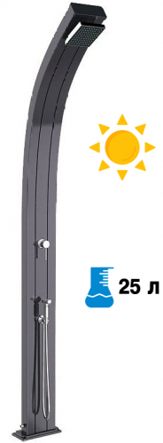 Принцип работы максимально прост, что делает солнечный душ популярным атрибутом пляжных курортов. Вода, хранящаяся в корпусе душа, нагревается за счет солнца. Нагретая вода смешивается с холодной водой из источника постоянного водоснабжения (или из садового шланга). При помощи смесителя возможна регулировка потока горячей и холодной воды до температуры комфорта.