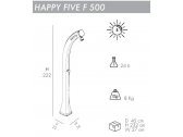 Уникальный дизайн летнего душа Happy Five F500 с нагревом воды от солнца сочетает в себе стиль и функциональность, простоту и изысканность. Солнечный душ Happy Five F500 подходит для установки на открытом воздухе в гостиницах, кемпингах, туристических или пляжных курортах, или для частного использования.