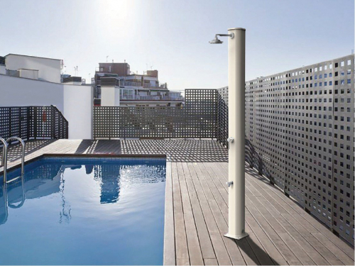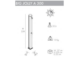 Big Jolly A320 представляет собой современный летний душ с нагревод воды от солнца и простым минималистичным дизайном. Созданный для релаксации солнечный душ Big Jolly A320 станет для вас освежающей прохладой в жаркое время года. В нижней части корпуса душа находится дополнительный кран, который удобно использовать для мытья ног, и благодаря которому удобство в использовании возрастает в несколько раз. Душ оснащен баком для воды с максимальной в серии Jolly вместимостью - 35 литров. Солнечный душ Big Jolly A320 идеально подходит для установки на открытом воздухе в гостиницах, спа-салонах, фитнес-центрах, кемпингах, а также туристических или пляжных курортах, или для частного использования.