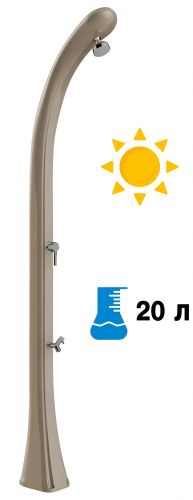 Уличный душ Happy One обладает инновационным и оригинальным дизайном, который сочетает в себе стиль и функциональность, простоту и изысканность. В нижней части корпуса душа находится дополнительный кран, который удобно использовать для мытья ног. Солнечный душ Happy One подходит для установки на открытом воздухе в гостиницах, кемпингах, туристических или пляжных курортах, или для частного использования. Установка выполняется без проблем, простое подключение к любому садовому шлангу или постоянному водоснабжению.