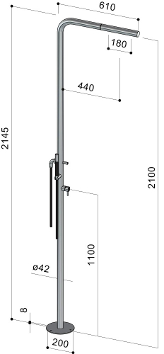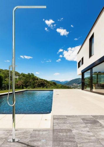 Дизайн уличного душа Skinny сочетает в себе простоту и прямолинейность. Душ подходит для установки на открытом воздухе в гостиницах, кемпингах, туристических или пляжных курортах, или для частного использования.