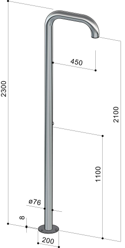 - Модель B76 - имеет кран с отделкой из нержавеющей стали AISI 316; скрытую душевую насадку ø76 мм с защитой от накипи; водоснабжение: холодная или предварительно смешанная вода.