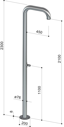 Дизайн уличного душа Boss сочетает в себе практичность и оригинальность, а также простоту и обтекаемость формы. Душ подходит для установки на открытом воздухе в гостиницах, кемпингах, туристических или пляжных курортах, или для частного использования.