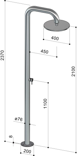 - Модель BW76.T - имеет самозакрывающийся кран с временным лимитом с отделкой из хромированной латуни; насадку-лейку ø400 мм из нержавеющей стали AISI 316 с шаровым шарниром и защитой от накипи; водоснабжение: холодная или предварительно смешанная вода.