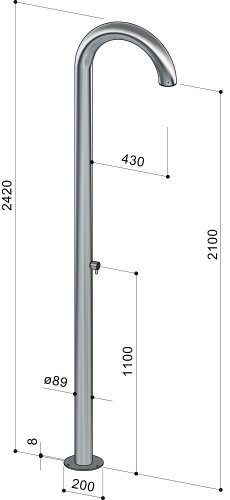 Дизайн уличного душа Club сочетает в себе практичность и оригинальность, а также простоту и обтекаемость формы. Душ подходит для установки на открытом воздухе в гостиницах, кемпингах, туристических или пляжных курортах, или для частного использования.