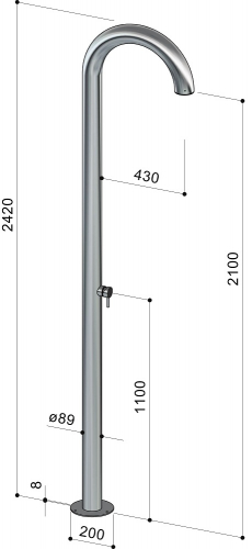 Дизайн уличного душа Club сочетает в себе практичность и оригинальность, а также простоту и обтекаемость формы. Душ подходит для установки на открытом воздухе в гостиницах, кемпингах, туристических или пляжных курортах, или для частного использования.