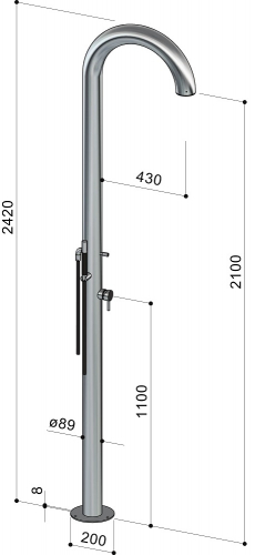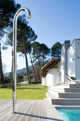 Дизайн уличного душа Club сочетает в себе практичность и оригинальность, а также простоту и обтекаемость формы. Душ подходит для установки на открытом воздухе в гостиницах, кемпингах, туристических или пляжных курортах, или для частного использования.