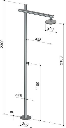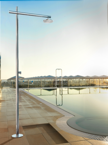 Дизайн уличного душа Onda сочетает в себе простоту, строгость и геометричность линий. Душ подходит для установки на открытом воздухе в гостиницах, кемпингах, туристических или пляжных курортах, или для частного использования.