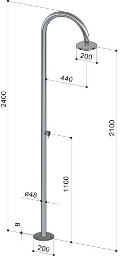 Дизайн уличного душа Origo All Steel сочетает в себе утонченность и плавность линий. Душ подходит для установки на открытом воздухе в гостиницах, кемпингах, туристических или пляжных курортах, или для частного использования.