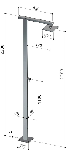 Дизайн уличного душа Square сочетает в себе прямолинейность и геометричность формы. Душ подходит для установки на открытом воздухе в гостиницах, кемпингах, туристических или пляжных курортах, или для частного использования.