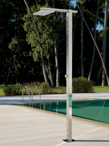 Дизайн уличного душа Square сочетает в себе прямолинейность и геометричность формы. Душ подходит для установки на открытом воздухе в гостиницах, кемпингах, туристических или пляжных курортах, или для частного использования.