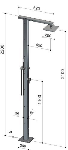 Дизайн уличного душа Square сочетает в себе прямолинейность и геометричность формы. Душ подходит для установки на открытом воздухе в гостиницах, кемпингах, туристических или пляжных курортах, или для частного использования.
