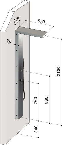 - Модель P22.M - имеет однорычажный смеситель с отделкой из нержавеющей стали AISI 316; скрытую душевую насадку размером 220x110 мм с защитой от накипи; водоснабжение: холодная или горячая вода.