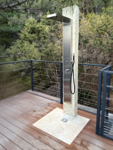 Дизайн уличного настенного душа In & Out сочетает в себе простоту и практичность. Душ подходит для установки на открытом воздухе в гостиницах, кемпингах, туристических или пляжных курортах, или для частного использования.