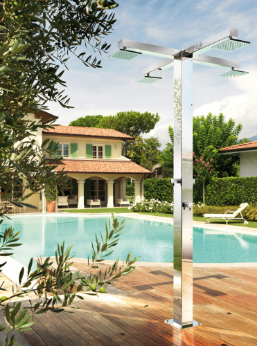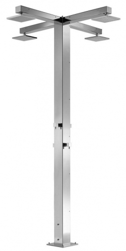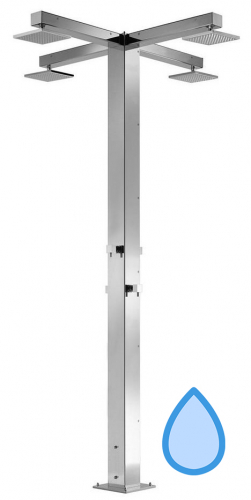 Дизайн уличного душа Community сочетает в себе практичность и оригинальность. С таким душем прием водных процедур является максимально комфортным одновременно для четверых человек. Душ подходит для установки на открытом воздухе в гостиницах, кемпингах, туристических или пляжных курортах, или для частного использования.