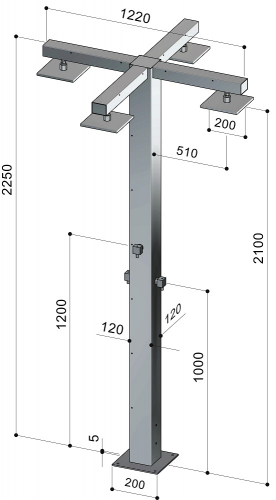 - Расширительный стержень для установки на земле с фланцем 200х200 мм из нержавеющей стали AISI 316, артикул: ALTA/XQ200.
