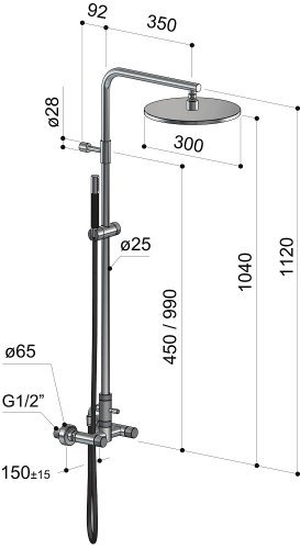- Стандартное скрытое настенное водоснабжение (Standard), которое подходит для использования душевой панели как на улице, так и в помещении. Подключение к водоснабжению: ½ "M.