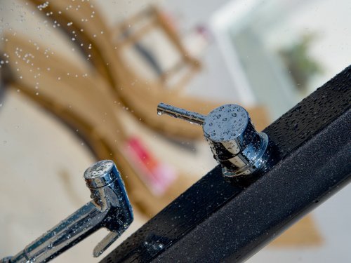 Уличный душ Funny Yin T345 с инновационным и оригинальным дизайном идеально подходит для установки как внутри, так и снаружи помещения, для сада, бассейна или пляжного домика. Чистый дизайн, элегантный и заботливый. Это просто, весело, современно. Его цвета - то, что отражает его название. Проект данных душей выполнен Giancarlo Rusconi, чье имя является синонимом качества и внимания к дизайну и имеет свою подпись в металлическом кольце в верхней части душа. Душ оснащен гибким шлангом, благодаря которому удобство в использовании возрастает в несколько раз.