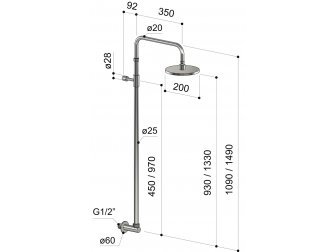 Проект данных душей выполнен Giancarlo Rusconi, чье имя является синонимом качества и внимания к дизайну и имеет свою подпись в металлическом кольце в верхней части душа. В нижней части корпуса душа находится дополнительный кран, который удобно использовать для мытья ног.