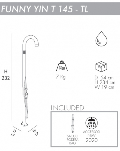 Проект данных душей выполнен Giancarlo Rusconi, чье имя является синонимом качества и внимания к дизайну и имеет свою подпись в металлическом кольце в верхней части душа. Душ оснащен гибким шлангом, благодаря которому удобство в использовании возрастает в несколько раз.