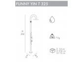 Уличный душ Funny Yin T325 с инновационным и оригинальным дизайном идеально подходит для установки как внутри, так и снаружи помещения, для сада, бассейна или пляжного домика. Чистый дизайн, элегантный и заботливый. Это просто, весело, современно. Его цвета - то, что отражает его название. Проект данных душей выполнен Giancarlo Rusconi, чье имя является синонимом качества и внимания к дизайну и имеет свою подпись в металлическом кольце в верхней части душа. В нижней части корпуса душа находится дополнительный кран, который удобно использовать для мытья ног.