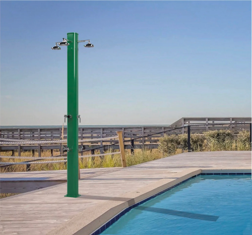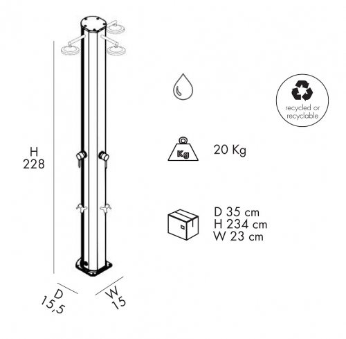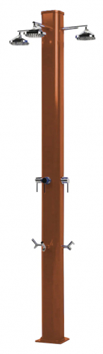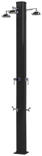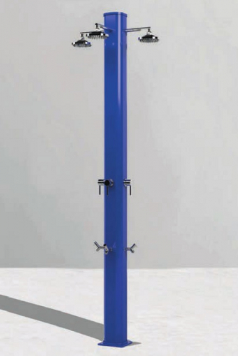 Гармония и элегантность форм делают душ Big Jolly A 365 аксессуаром, подходящим для любой обстановки, будь то просто сад или зона около бассейна. Идеально подходит для общественных и приморских объектов. Изготовлен из алюминия с антикоррозийной обработкой и имеет прямое подключение к основной линии горячей и холодной воды. Две душевые насадки имеют широкую струю воды с возможностью регулировки положения для выбора желаемой температуры - освежающего прохладного душа, теплой бодрящей струи воды или горячего душа. В нижней части корпуса душа находятся два дополнительных крана, которые удобно использовать для мытья ног.