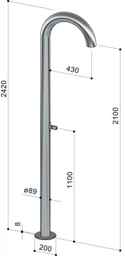 Дизайн уличного душа Club сочетает в себе практичность и оригинальность, а также простоту и обтекаемость формы. Душ подходит для установки на открытом воздухе в гостиницах, кемпингах, туристических или пляжных курортах, или для частного использования.