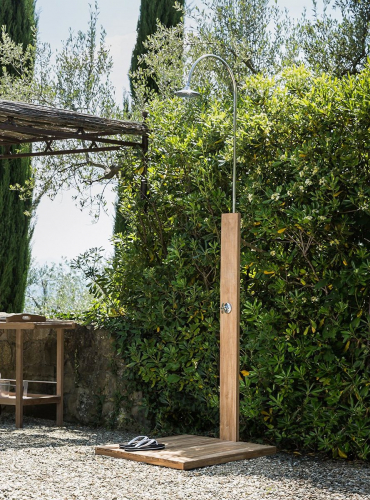 Деревянный уличный душ Helix выполнен из массива тика. Модель прекрасно подходит для использования на открытом воздухе. Все, что для этого нужно - это вода и садовый шланг. Этот садовый душ утончен и эффективен, идеально подходит для бассейна, чтобы победить летнюю жару и освежиться в солнечный день.