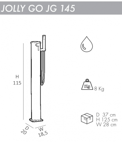 Уличный душ Jolly Go JG145 подходит для установки на открытом воздухе в гостиницах, кемпингах, туристических или пляжных курортах, или для частного использования. Душ оснащен гибким шлангом, благодаря которому удобство в использовании возрастает в несколько раз.