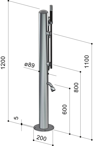 Уличный душ Spring подходит для установки на открытом воздухе в гостиницах, кемпингах, туристических или пляжных курортах, садах, или для частного использования.