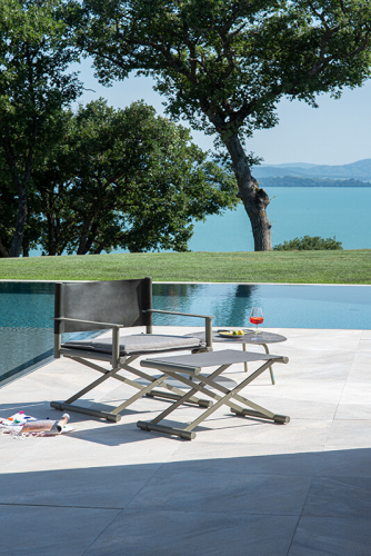 «Я представил себе, как увижу Землю с привилегированной точки зрения. Terra - это складное кресло большого размера, которое может перемещаться из моря на сушу, изнутри - наружу и наоборот. Его отличительными чертами являются дизайн, легкость, прочность и выбор материалов» - так описывает дизайнер свое творение. Terra - это универсальный и очаровательный продукт, поскольку он адаптируется к любой среде и поддается самому разнообразному сочетанию с другими коллекциями. Складное кресло для отдыха, функциональное и удобное, которое идеально дополняет обеденную и гостиную зоны отдыха как на открытом воздухе, так и в помещении.