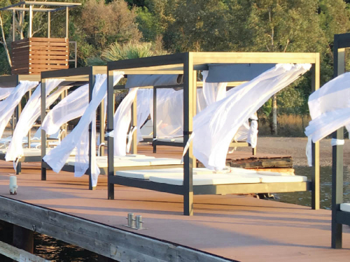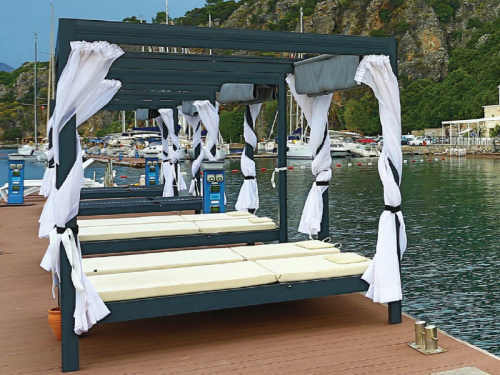 Металлический шатер мебели для Mr. Gazebo прекрасно подходит для создания лаунж зоны возле бассейна, на пляже или на любом открытом пространстве. Каркас выполнен из алюминия - металла, который легко переносит воздействие влаги и изменения температуры. Матрасы выполнены из ткани Etisilik®, которая обладает водоотталкивающими, маслоотталкивающими свойствами и устойчивостью к любым пятнам и воздействию УФ-излучения. Оборудованный двумя лежаками шатер - комфортное место для отдыха.