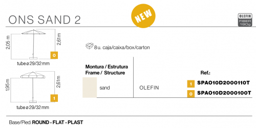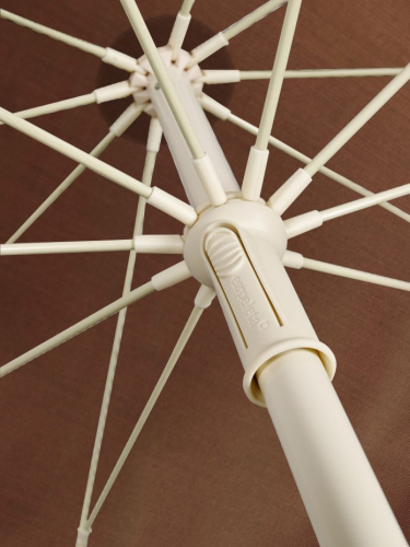 Зонт Ons защитит от ярких солнечных лучей и создаст приятную затененную атмосферу на открытых площадках. С опорой песочного цвета модель естественным образом впишется в протсранство на пляже или у бассейна.