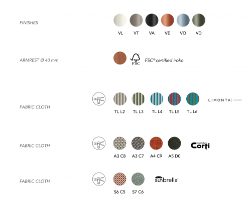 Новая коллекция Dress Code вдохновлена канонами высокой моды. Дизайнеры постарались воспроизвести игру с сочетаниями цветов конструкций и сидений, с рисунками тканей для внутреннего и уличного использования. В дополнение к версиям Basic и Smart из гладких и плоских тканей есть стеганая версия Glam из больших квадратов и волнообразная версия Fashion с мягкой подкладкой. Выстегивание и мягкая обивка являются как эстетическим элементом, так и источником большего комфорта.