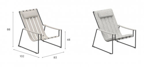 Новая оригинальная коллекция Strappy представляет собой конструкцию из нержавеющей стали, состоящую из одного непрерывного стержня, проходящего по всему периметру, образующего минималистичный, но функциональный и штабелируемый каркас, к которому прикреплены мягкие ремни сиденья и подлокотники. Они кажутся подвешенными внутри этой элегантной рамы. Однако то, что передняя и задняя часть соединены только мягкими элементами, является оптической иллюзией. На самом деле бросается в глаза обивка: ремни красиво спрятаны внутри. Эта оптическая «хитрость» демонстрирует нам очень тонкий и хрупкий на вид каркас. Обивку можно быстро снять для чистки или хранения на зиму. С помощью дополнительного набора вы даже можете изменить внешний вид ремешков, чтобы они соответствовали цветам сезона.