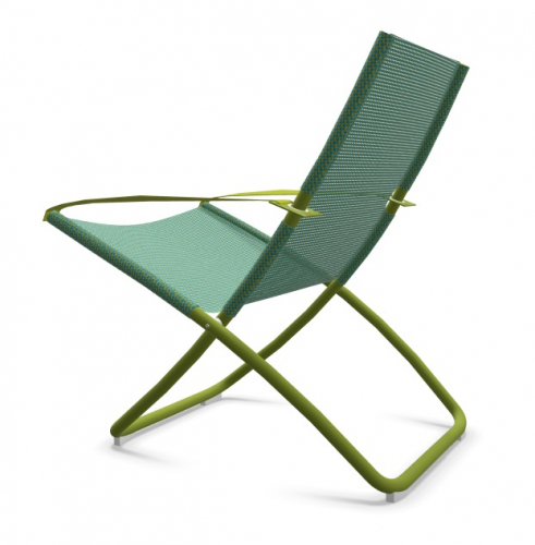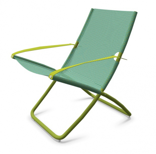 В коллекции также есть практичный элемент поддержки, который также может функционировать как подставка для ног, доступного в том же диапазоне цветов, что и шезлонг. Маленькое складное кресло и удобный лежак дополняют эту практичную и забавную коллекцию с запоминающимся дизайном, дополненным энергичным цветом.