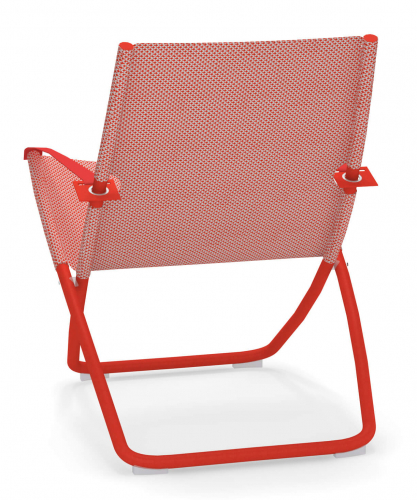 В коллекции также есть практичный элемент поддержки, который также может функционировать как подставка для ног, доступного в том же диапазоне цветов, что и шезлонг. Маленькое складное кресло и удобный лежак дополняют эту практичную и забавную коллекцию с запоминающимся дизайном, дополненным энергичным цветом.