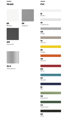 Варианты отделки каркаса: алюминий (ALU), сталь - серебристый (SK), белый (BS), антрацит (AN).