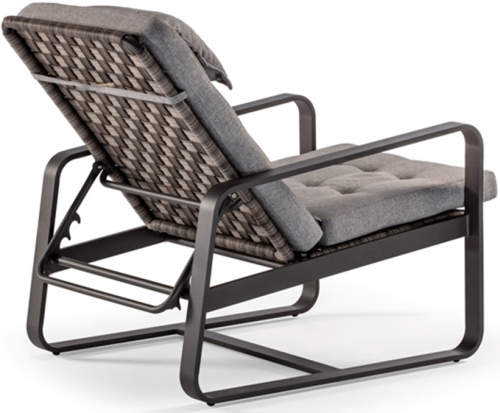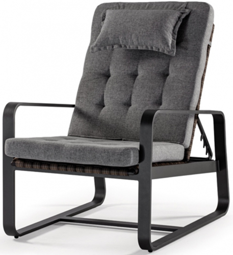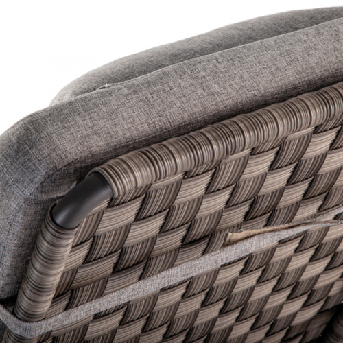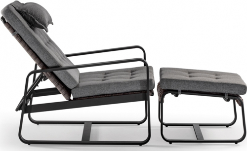 Кресло-шезлонг Capri Relax в комплекте с пуфом-подставкой для ног обеспечивает комфортный отдых на открытом воздухе. Алюминиевый каркас с порошковым покрытием делает мебель устойчивой и надежной. Оплетка каркаса сделана из экоканата. Мягкие подушки выполнены из устойчивого к пятнам и ультрафиолетовому излучению акрила. Спинка имеет регулировку в 5 положениях для достижения максимально комфортного расположения. Благодаря материалам кресло-шезлонг можно разместить на любой открытой площадке: на террасе, в саду, возле бассейна, на пляже.