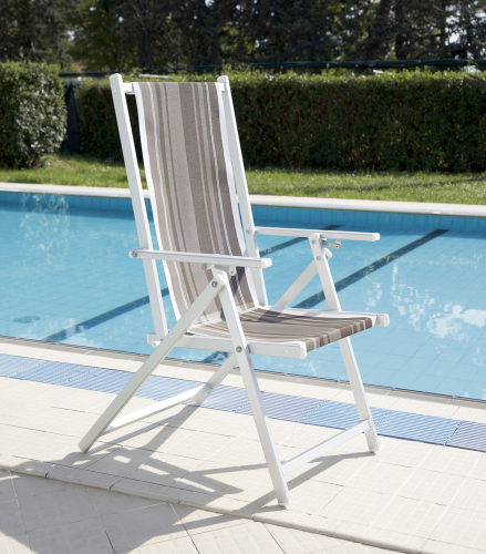 Алюминиевое кресло Marinella для использования на пляже, площадке возле бассейна или в саду.