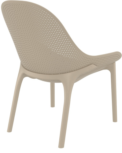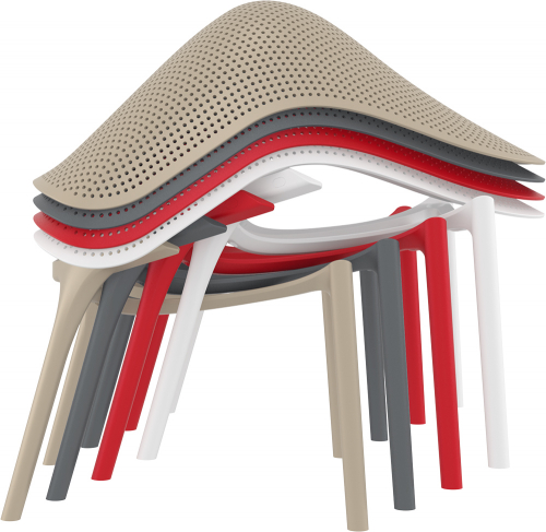 Пластиковые кресла серии Sky с перфорированными сиденьем и спинкой станут отличным выбором для обстановки фуд-кортов, кафе, ресторанов и баров. Благодаря использованию высококачественных материалов, они долгое время не теряют своего привлекательного внешнего вида, даже несмотря на активную эксплуатацию. Отсутствие металлического каркаса и устойчивость к ультрафиолетовому воздействию обеспечивают использование пластиковых стульев Sky Lounge на открытых площадках.