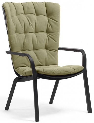 Folio - это инновационное расслабляющее кресло, регулируемое в двух положениях, предназначенное для уличного использования. Изготовлено из перерабатываемой стекловолоконной смолы. Кресло Folio может быть выполнено с фиксированным основанием либо на ножках-полозьях как романтическое кресло-качалка. Основная конструкция кресла сделана из одного перфорированного стекловолоконного листа (отсюда и название на итальянском языке "folio"), украшенного квадратным узором. Особенностью кресла является его изогнутый дизайн, не требующий каких-либо связующих элементов между сидением и спинкой. Кресло Folio полностью изготовлено в Италии - от дизайна до изготовления пресс-форм и производства.