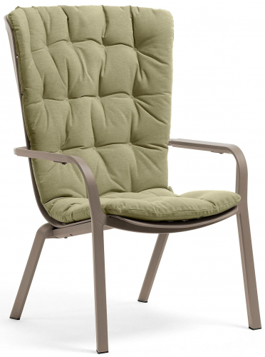 Folio - это инновационное расслабляющее кресло, регулируемое в двух положениях, предназначенное для уличного использования. Изготовлено из перерабатываемой стекловолоконной смолы. Кресло Folio может быть выполнено с фиксированным основанием либо на ножках-полозьях как романтическое кресло-качалка. Основная конструкция кресла сделана из одного перфорированного стекловолоконного листа (отсюда и название на итальянском языке "folio"), украшенного квадратным узором. Особенностью кресла является его изогнутый дизайн, не требующий каких-либо связующих элементов между сидением и спинкой. Кресло Folio полностью изготовлено в Италии - от дизайна до изготовления пресс-форм и производства.