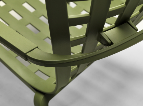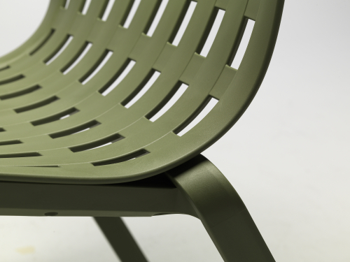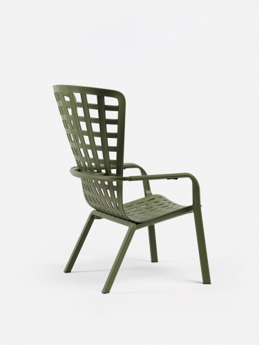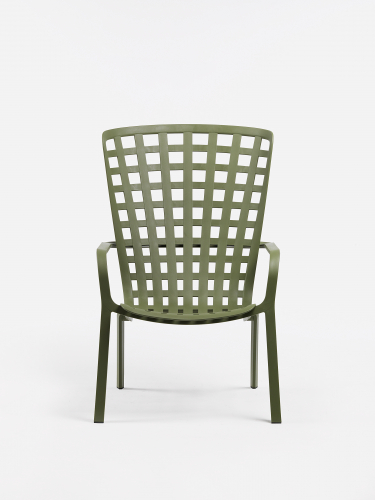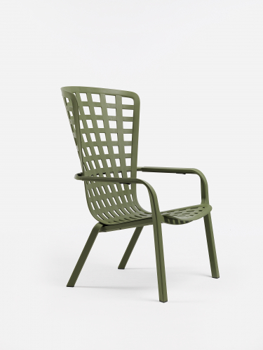 Folio - это инновационное расслабляющее кресло, регулируемое в двух положениях, предназначенное для уличного использования. Изготовлено из перерабатываемой стекловолоконной смолы. Кресло Folio может быть выполнено с фиксированным основанием либо на ножках-полозьях как романтическое кресло-качалка. Основная конструкция кресла сделана из одного перфорированного стекловолоконного листа (отсюда и название на итальянском языке "folio"), украшенного квадратным узором. Особенностью кресла является его изогнутый дизайн, не требующий каких-либо связующих элементов между сидением и спинкой. Кресло Folio полностью изготовлено в Италии - от дизайна до изготовления пресс-форм и производства.