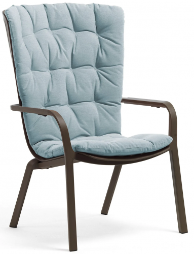 Folio - это инновационное расслабляющее кресло, регулируемое в двух положениях, предназначенное для уличного использования. Изготовлено из перерабатываемой стекловолоконной смолы. Кресло Folio может быть выполнено с фиксированным основанием либо на ножках-полозьях как романтическое кресло-качалка. Основная конструкция кресла сделана из одного перфорированного стекловолоконного листа (отсюда и название на итальянском языке "folio"), украшенного квадратным узором. Особенностью кресла является его изогнутый дизайн, не требующий каких-либо связующих элементов между сидением и спинкой. Кресло Folio полностью изготовлено в Италии - от дизайна до изготовления пресс-форм и производства.