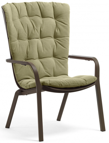 Folio - это инновационное расслабляющее кресло, регулируемое в двух положениях, предназначенное для уличного использования. Изготовлено из перерабатываемой стекловолоконной смолы. Кресло Folio может быть выполнено с фиксированным основанием либо на ножках-полозьях как романтическое кресло-качалка. Основная конструкция кресла сделана из одного перфорированного стекловолоконного листа (отсюда и название на итальянском языке "folio"), украшенного квадратным узором. Особенностью кресла является его изогнутый дизайн, не требующий каких-либо связующих элементов между сидением и спинкой. Кресло Folio полностью изготовлено в Италии - от дизайна до изготовления пресс-форм и производства.