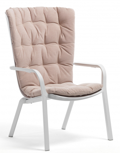 Folio - это инновационное расслабляющее кресло, регулируемое в двух положениях, предназначенное для уличного использования. Изготовлено из перерабатываемой стекловолоконной смолы. Кресло Folio может быть выполнено с фиксированным основанием либо на ножках-полозьях как романтическое кресло-качалка. Основная конструкция кресла сделана из одного перфорированного стекловолоконного листа (отсюда и название на итальянском языке "folio"), украшенного квадратным узором. Особенностью кресла является его изогнутый дизайн, не требующий каких-либо связующих элементов между сидением и спинкой. Кресло Folio полностью изготовлено в Италии - от дизайна до изготовления пресс-форм и производства.