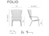 Folio - это инновационное расслабляющее кресло, регулируемое в двух положениях, предназначенное для уличного использования. Изготовлено из перерабатываемой стекловолоконной смолы. Кресло Folio может быть выполнено с фиксированным основанием либо на ножках-полозьях как романтическое кресло-качалка. Основная конструкция кресла сделана из одного перфорированного стекловолоконного листа (отсюда и название на итальянском языке "folio"), украшенного квадратным узором. Особенностью кресла является его изогнутый дизайн, не требующий каких-либо связующих элементов между сидением и спинкой. Кресло Folio полностью изготовлено в Италии - от дизайна до изготовления пресс-форм и производства.
