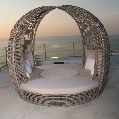 Элегантная и удобная плетеная беседка Sochi из искусственного ротанга цвета Off White с подушками из ткани Sunbrella. Современная беседка Sunday отличается стильным дизайном и станет украшением любой террасы и зоны возле бассейна.